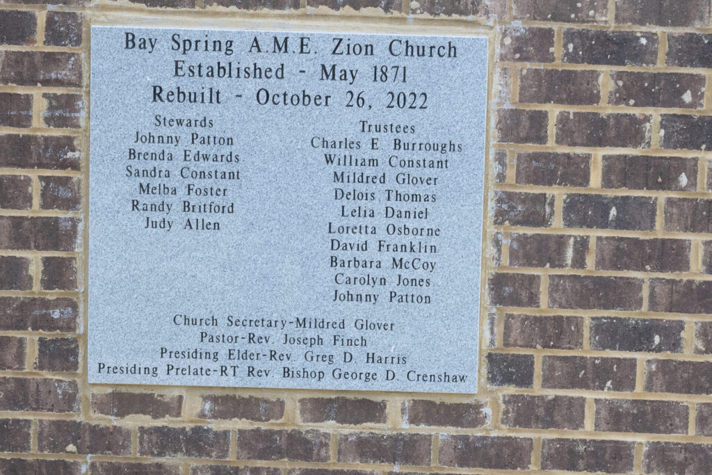 Bay Spring A.M.E. Zion ChurchEstablished 1871Rebuilt 2022Located at 465 County Road 86, Greensboro. 32.79823, -87.51072