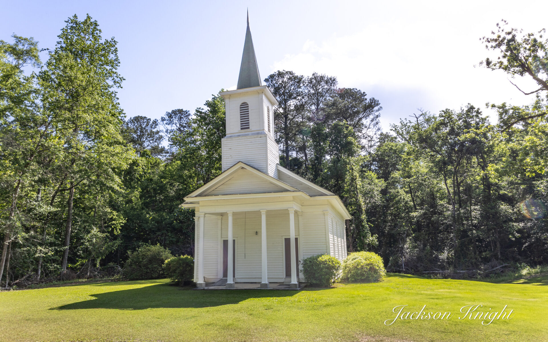 This is Bladon Springs Methodist Church, located deep within the peaceful grounds of Bladon Springs State Park in Choctaw County, Alabama. Built around 1874 — or possibly earlier — by Peter D. Flint, this simple wooden church reflects the humble rural Methodist style of the 19th century. It now stands as part of the Bladon Springs Historic District, listed on the Alabama Register of Landmarks and Heritage.