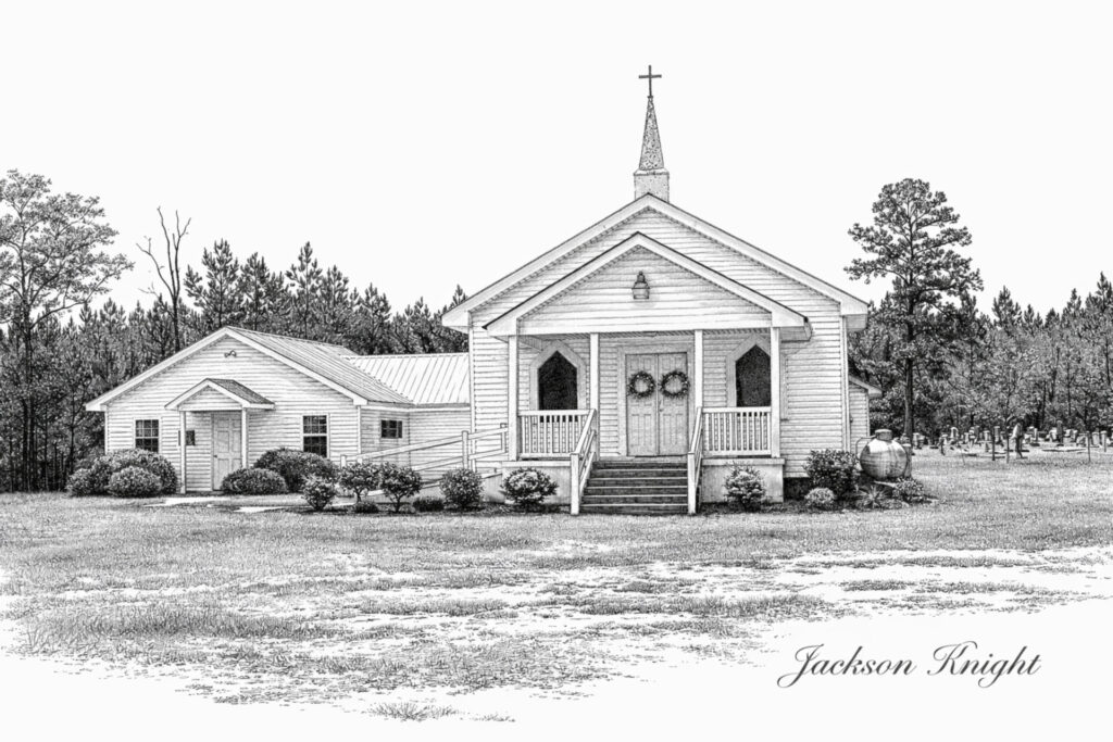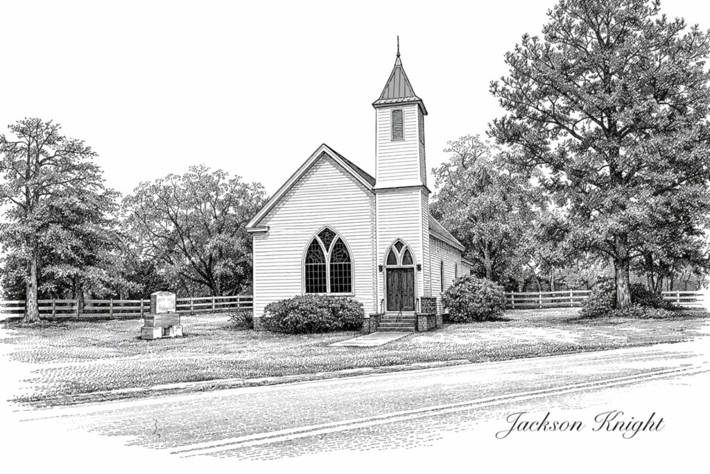 Burnt Corn Methodist Church – Pen & Ink Illustration (Printable Download)