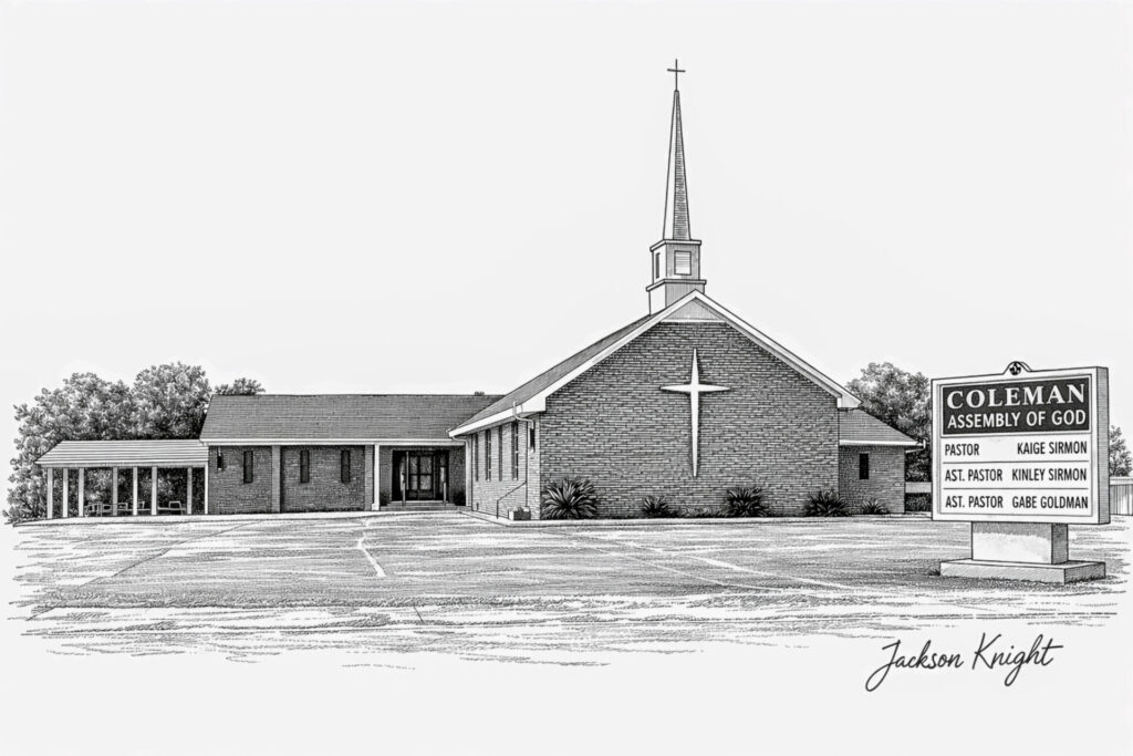 Coleman Assembly of God Church – Pen & Ink Illustration (Printable Download)