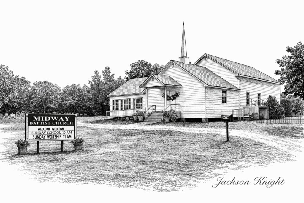 Midway Baptist Church– Pen & Ink Illustration (Printable Download)