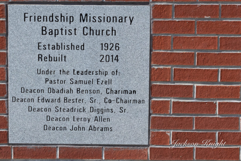 Friendship Missionary Baptist ChurchEstablished 1926Rebuilt 2014Located at 467 Brasfield Road, Akron 32.82760, -87.75094