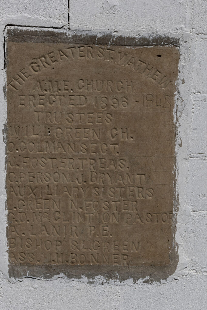 Greater Saint Matthew A.M.E ChurchErected 1896Rebuilt 1948Located at 365 E. Mill Avenue, Brantley. 31.58752, -86.25068