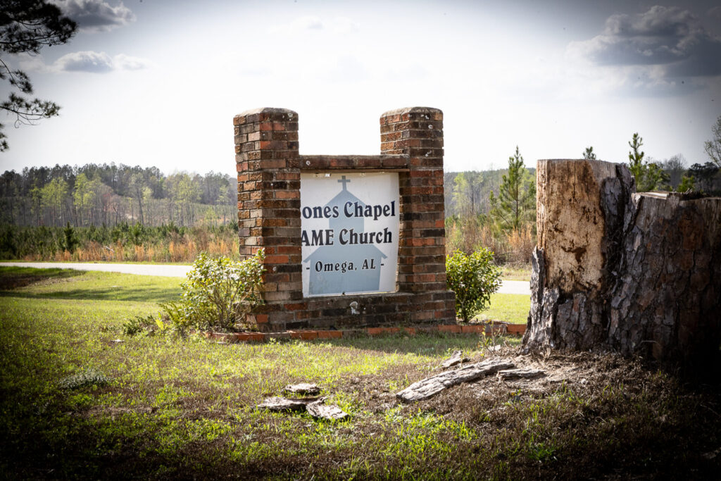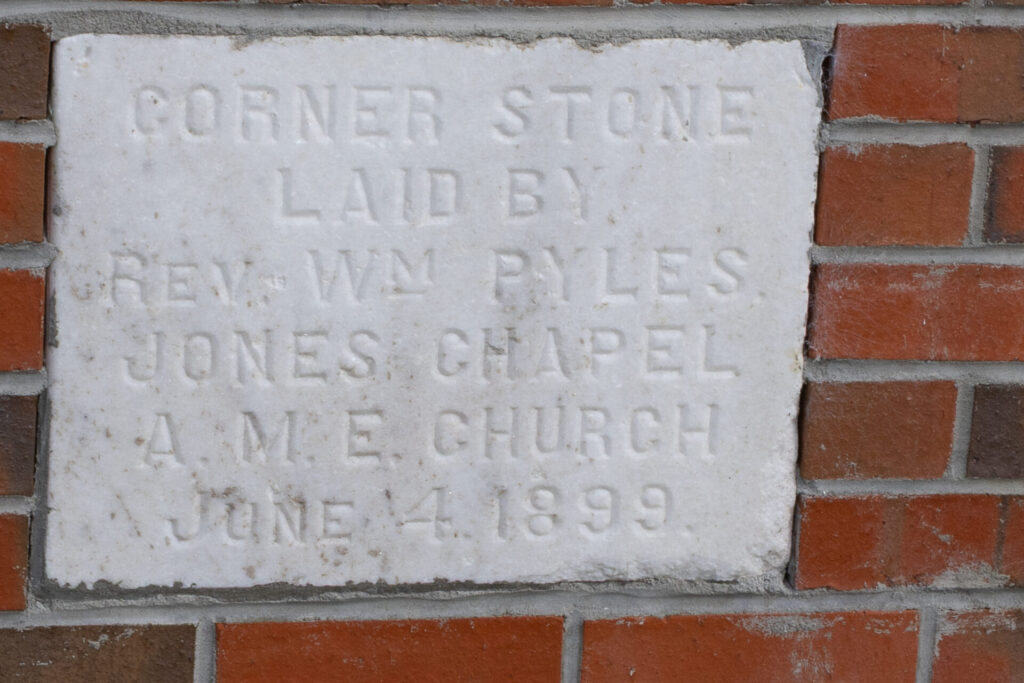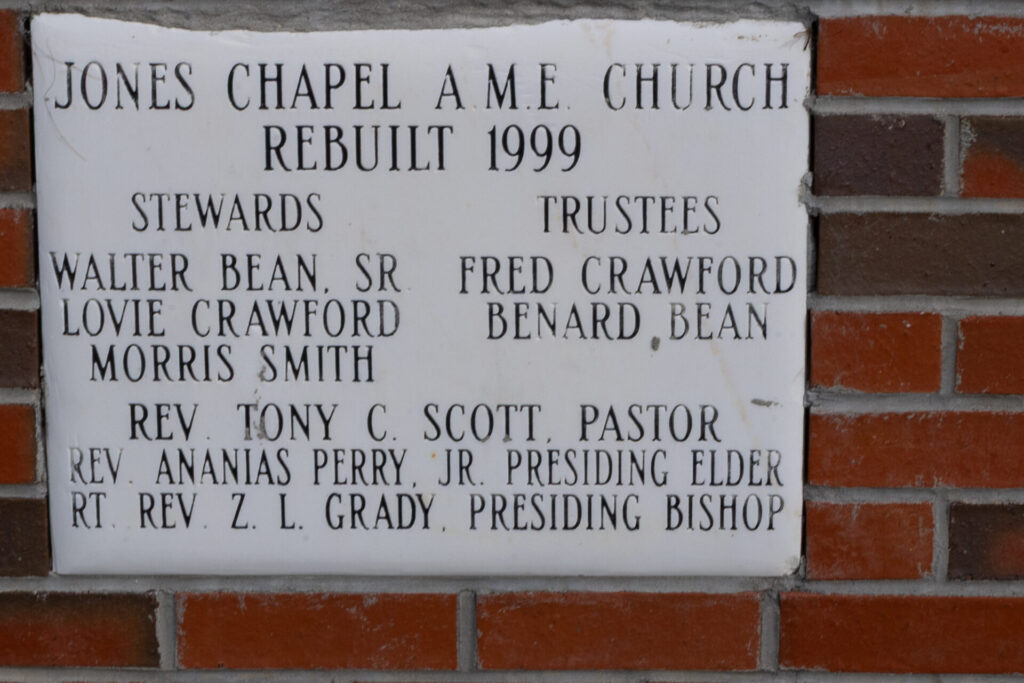 Jones Chapel A.M.E. ChurchFounded 1899Rebuilt 1999Located at 4101 County Road 19, Omega. 31.94583, -85.75664