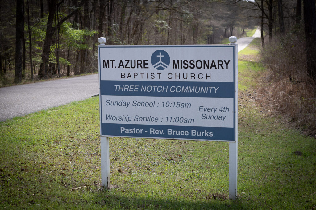Mount Azure Missionary Baptist ChurchLocated on County Road 35, Three Notch Community. 32.08432, -85.59808