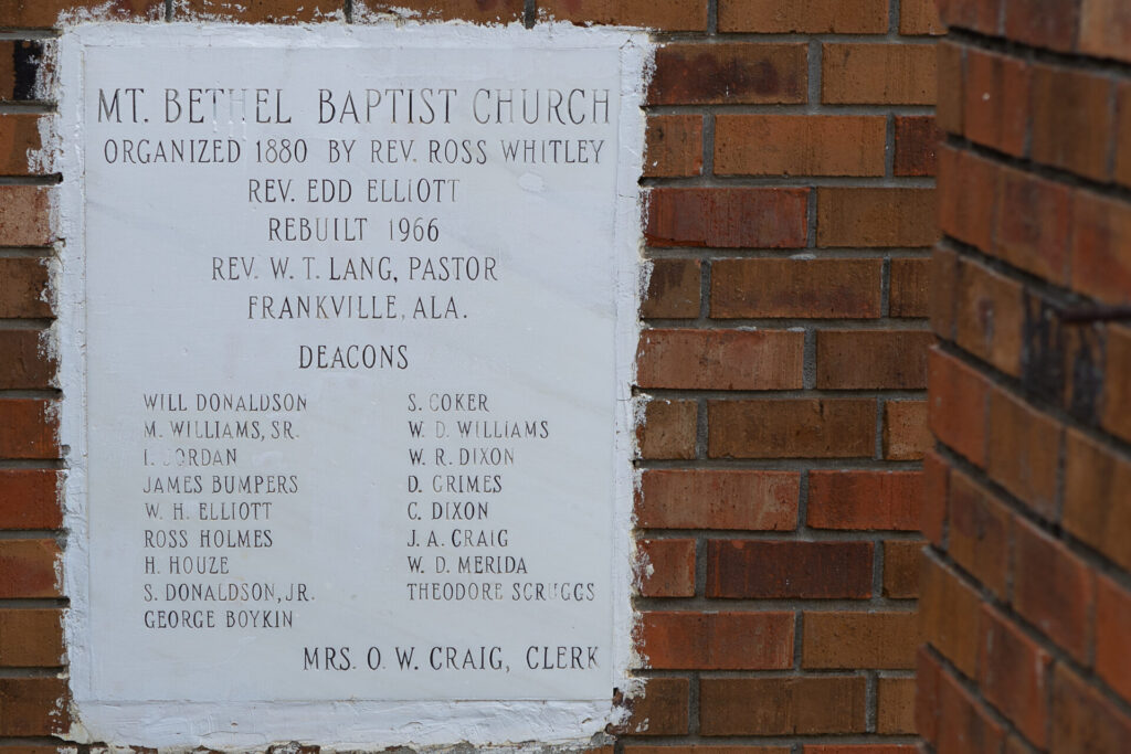 Mount Bethel Baptist ChurchOrganized 1880Rebuilt 1966Located at 318 Mt Bethel Church Road, Frankville. 31.64095, -88.14452