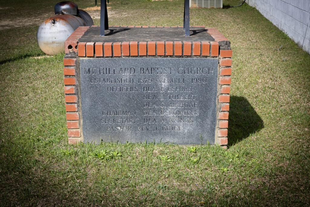 Mount Hilliard Baptist ChurchEstablished 1879Rebuilt 1980Located at 445 County Road 53, Banks. 31.92940, -85.67786