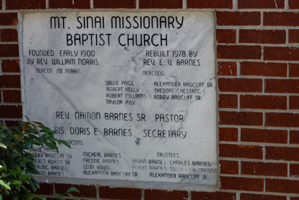 Mount Sinai Missionary Baptist Church Founded early 1900’sRebuilt1978Located at 250 Sims Street, Calvert. 31.16028, -88.00556
