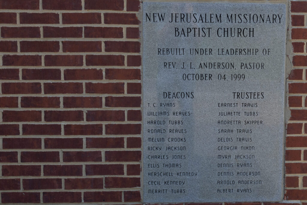New Jerusalem Baptist ChurchEstablished 1933Rebuilt 1999Located at 1248 County Road 21, Greensboro. 32.73975, -87.62632