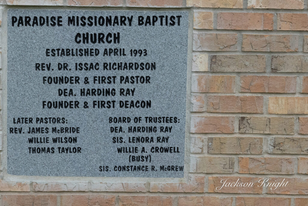 Paradise Missionary Baptist ChurchEstablished 1993Located at 1106 E Pushmataha Street, Butler. 32.08944, -88.20821
