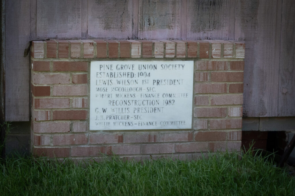 Pine Grove Union SocietyEstablished 1904Rebuilt 1982Located at 11254 County Road 16, Greensboro. 32.59818, -87.71637