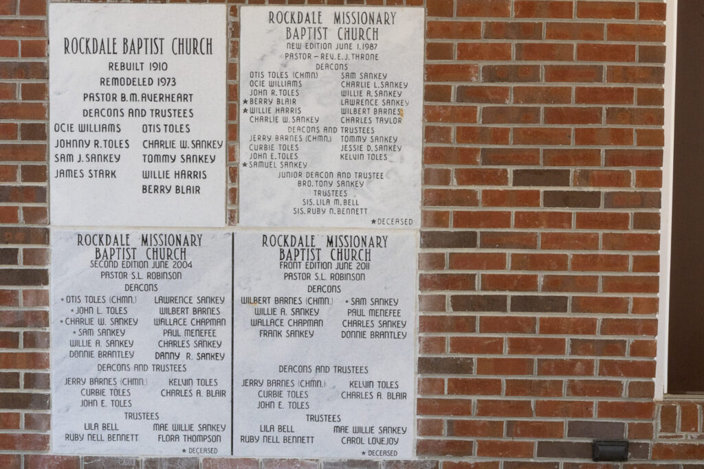 Rockdale Missionary Baptist ChurchRebuilt 1910Remodeled 1973Located at 942 Rockdale Road, Grady. 31.96357, -86.25091