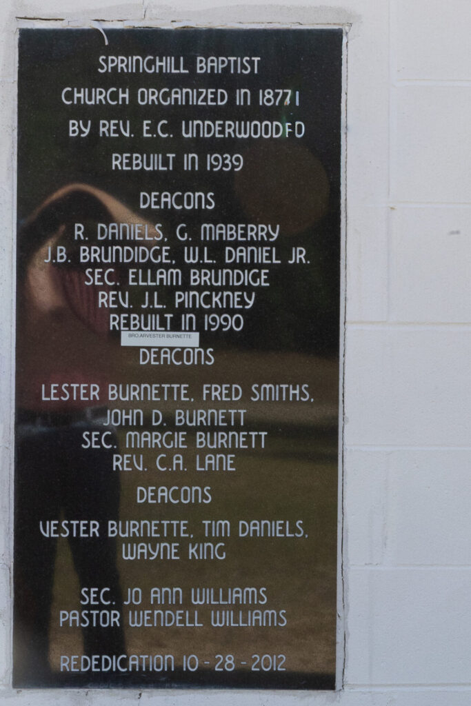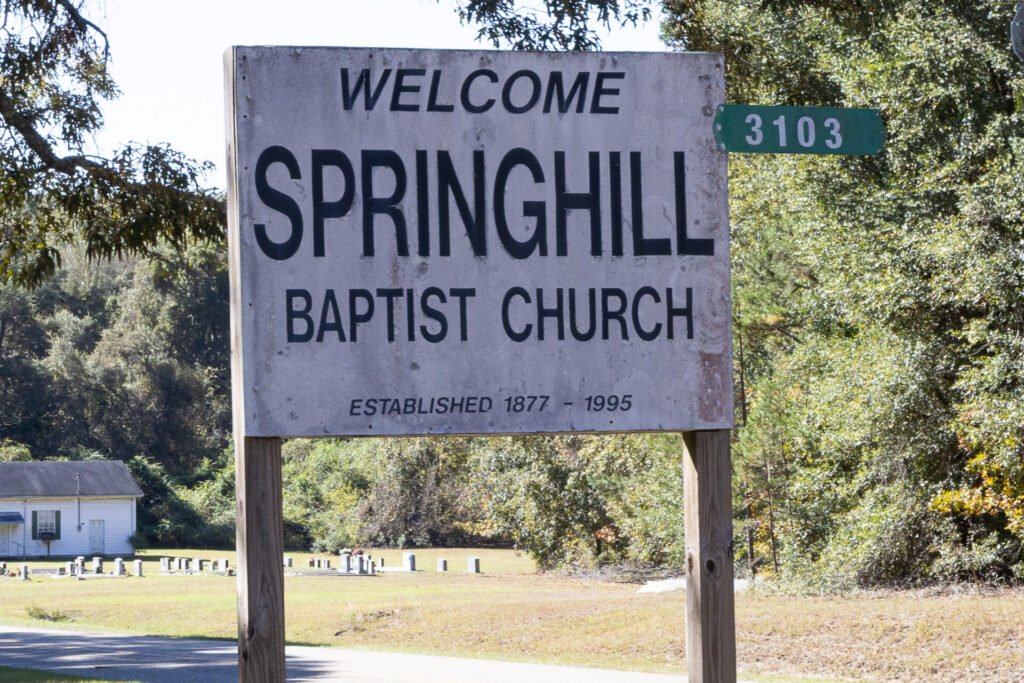 Spring Hill Baptist ChurchEstablished 1877Rebuilt 1939Rebuilt 1990Located at 3103 Leon Tower Road, Dozier. 31.55349, -86.39150
