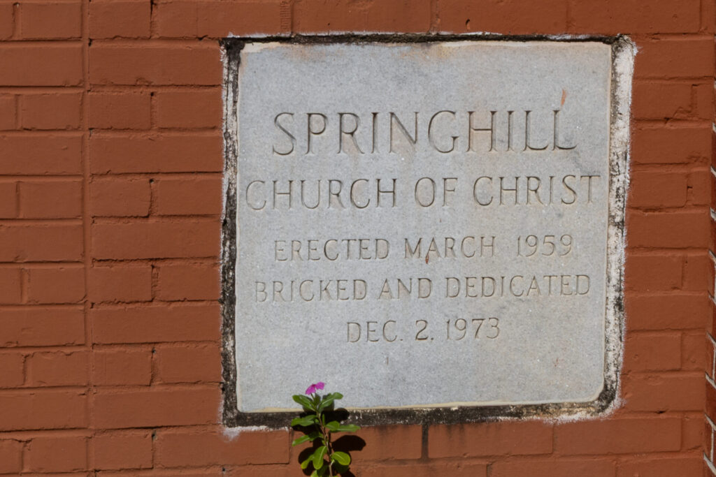 Spring Hill Church of ChristErected 1959Dedicated 1973Located at 1007 Garnersville Road, Highland Home. 31.87685, -86.28055