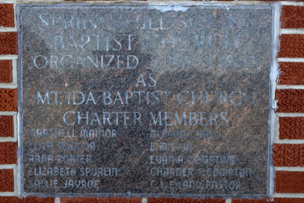 Spring Hill South Baptist ChurchOrganized 1895Located at 1451 Spring Hill Road, Brantley. 31.63025, -86.30752