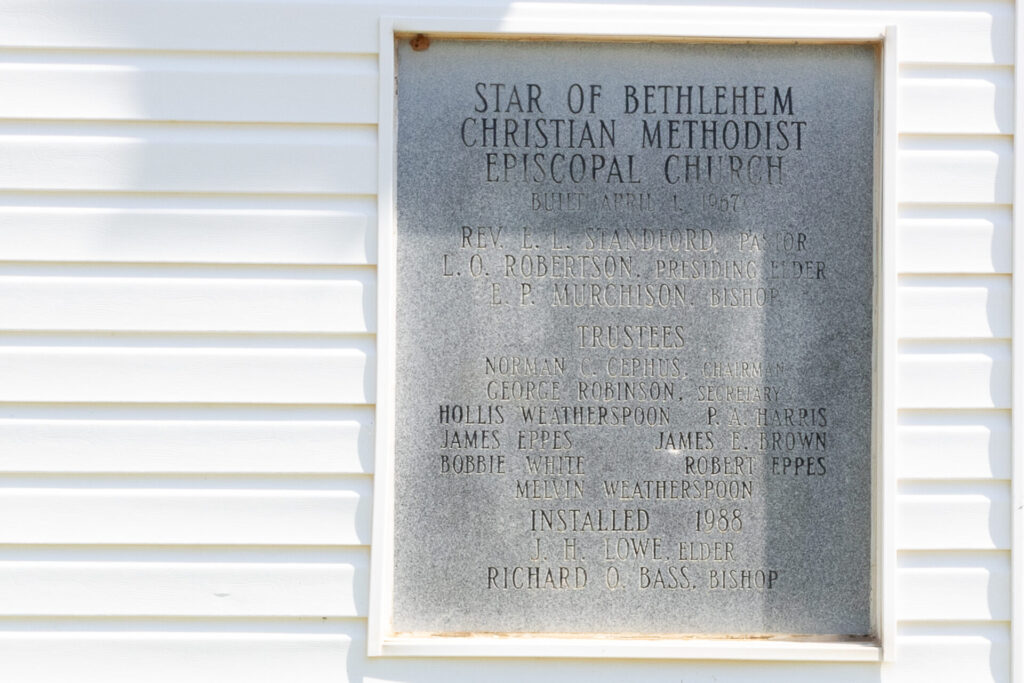 Star of Bethlehem C.M.E. ChurchBuilt 1967Located at 32888 AL. Hwy 69, Moundville. 32.89908, -87.62560