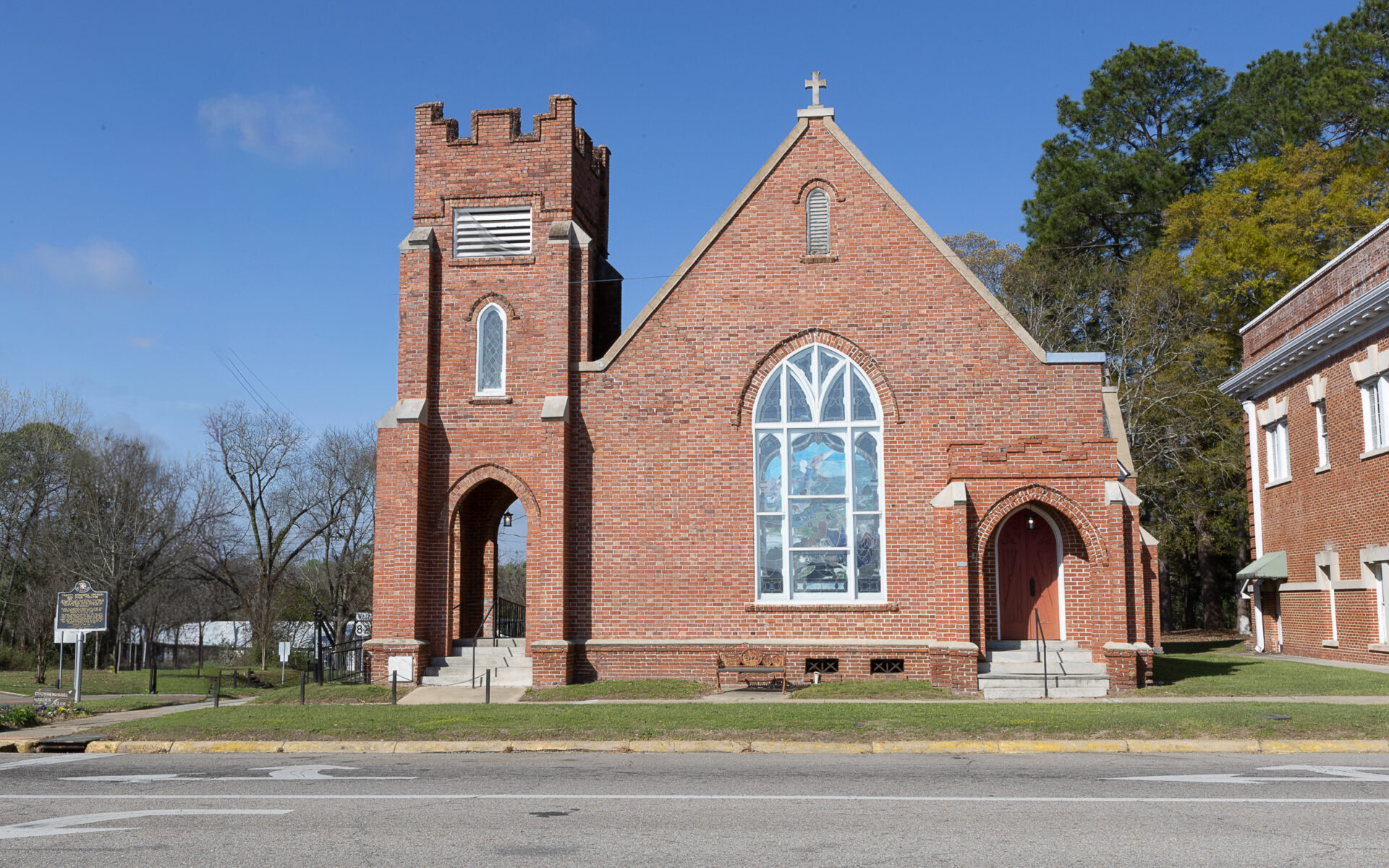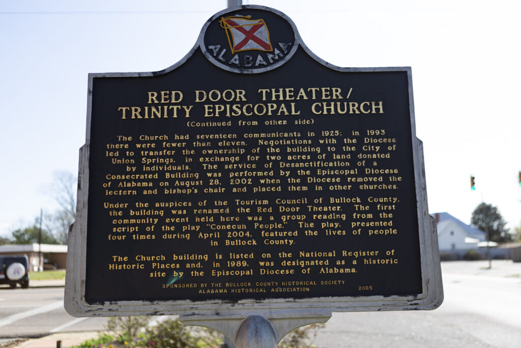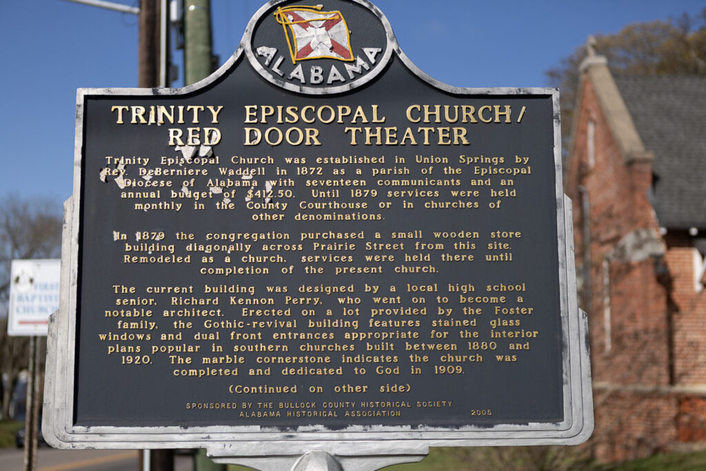 Trinity Episcopal ChurchEstablished 1872Built 1909Located at 101 North Prairie Street, Union Springs. 32.14358, -85.71627