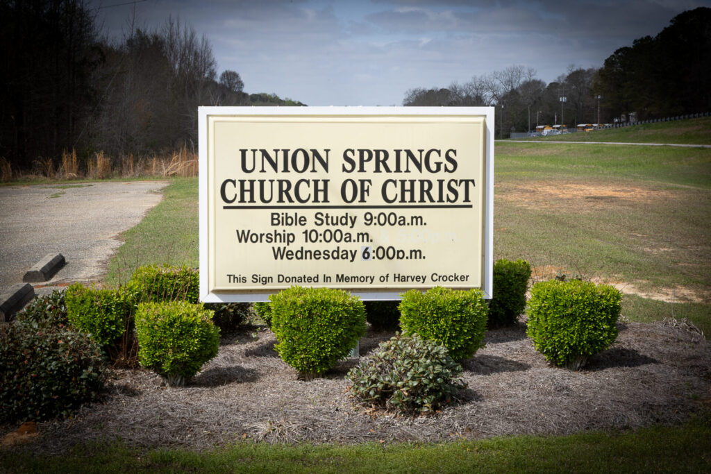 Union Springs Church of Christ Located at 26 Southern Springs Road, Union Springs. 32.14559, -85.69197